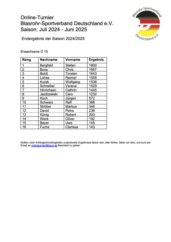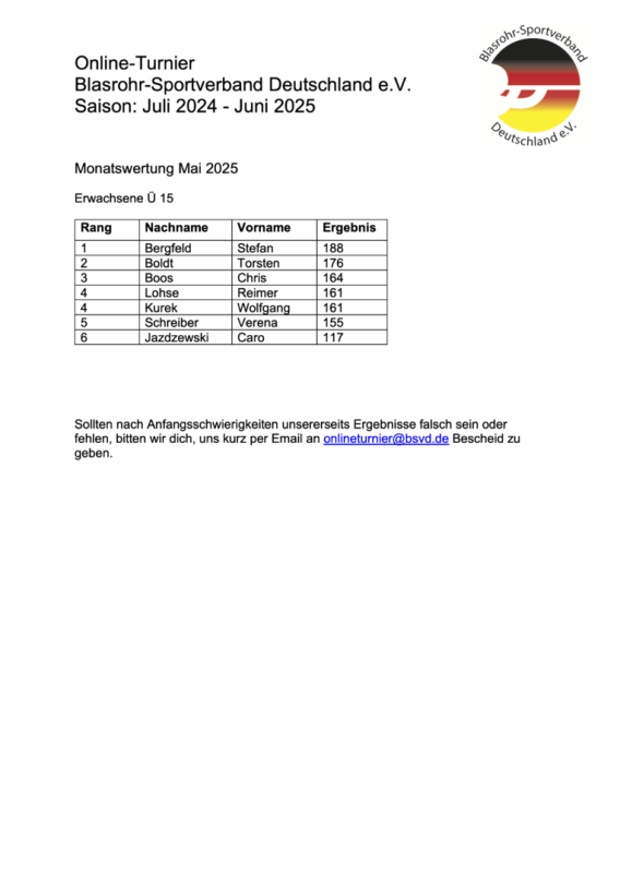 BSVD ist Mitglied im Europäischen Blasrohrsportverband